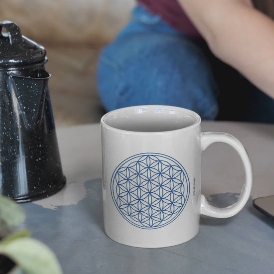 Ce mug en céramique de 325 ml associe la géométrie sacrée de la Fleur de vie à une citation positive : "Ne te compare pas, tu es unique".